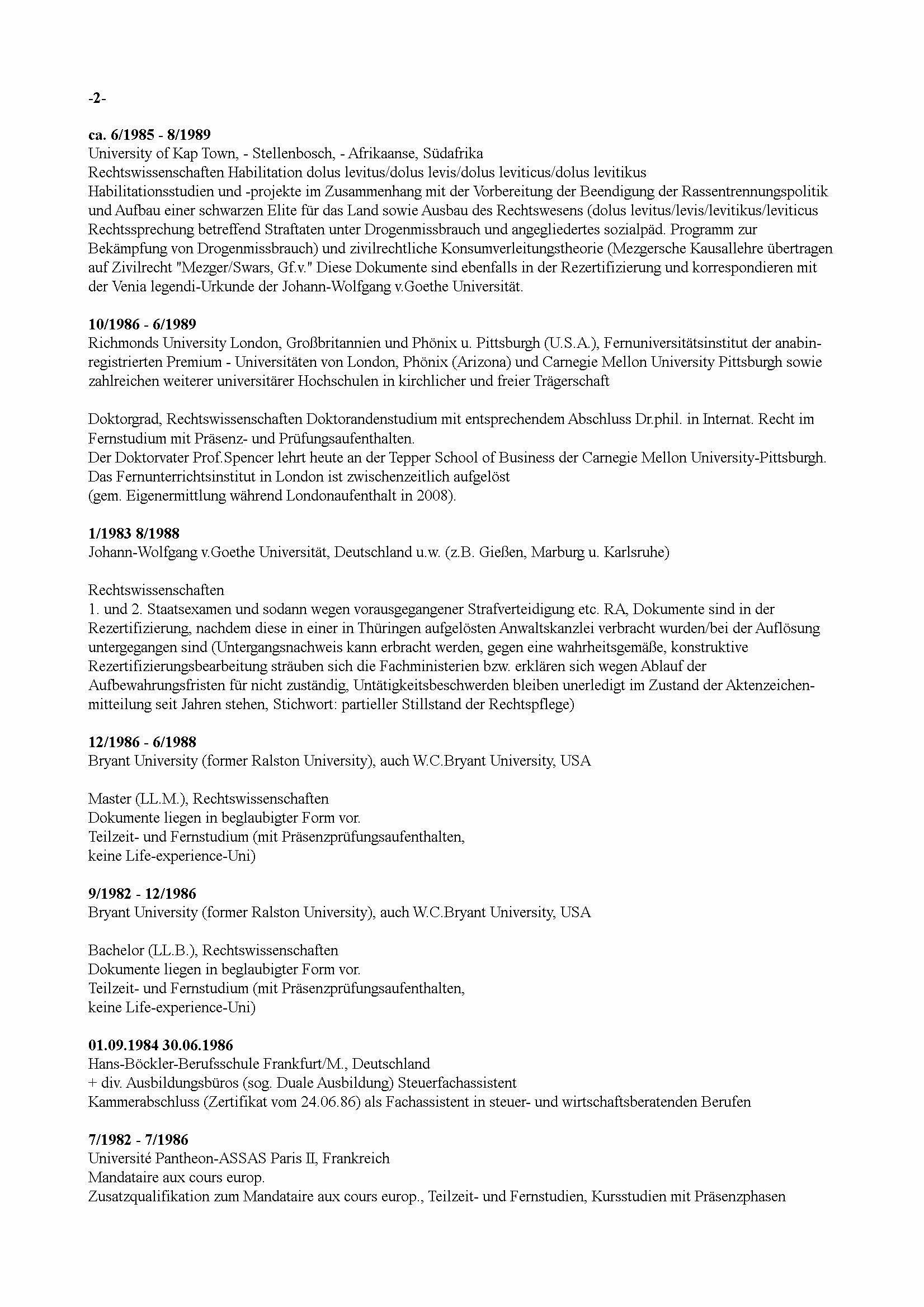 Beruflicher Werdegang in Deutschland (ohne freiberufliche und künstlerische Einzelaufträge)